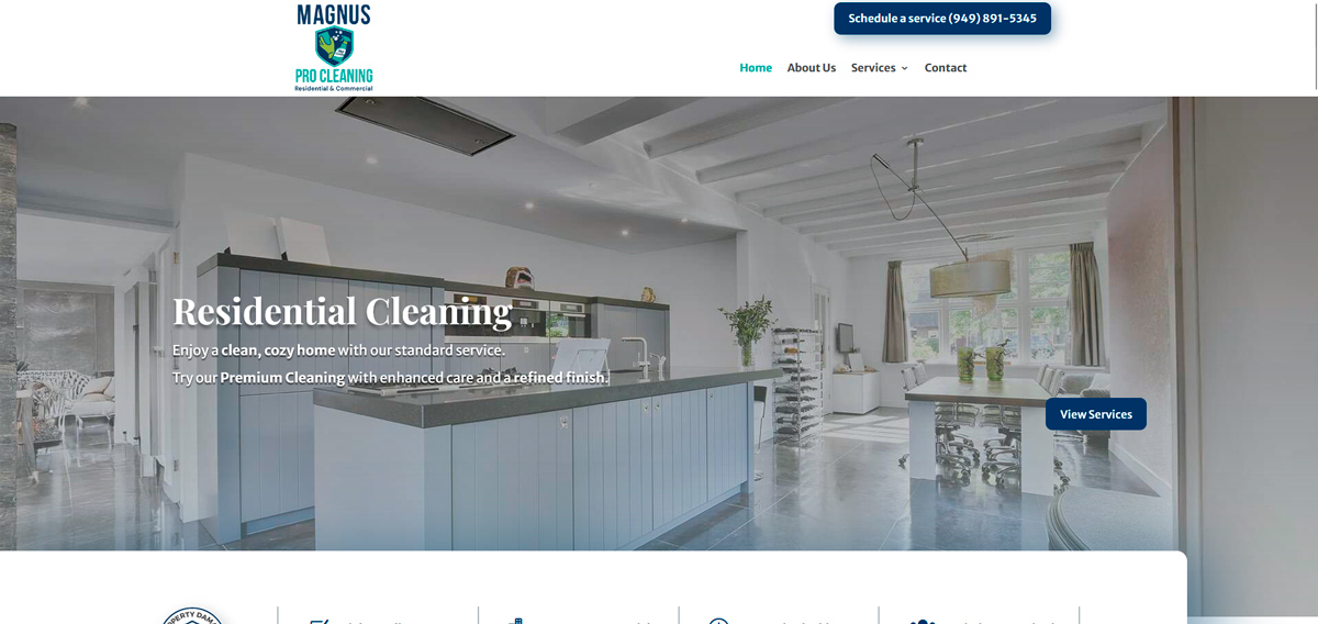 Magnus Pro Cleaning es un servicio premium de limpieza residencial y comercial enfocado en ofrecer soluciones de alta calidad y atención al detalle para hogares y oficinas. Sus servicios incluyen limpieza regular, limpieza profunda, limpieza de mudanza (entrada/salida), limpieza post-construcción y mantenimiento de oficinas, todos adaptados a las necesidades y horarios de cada cliente. Con un enfoque en la consistencia, el profesionalismo y el cuidado en los detalles, buscan crear espacios limpios y bien cuidados que mejoren la comodidad, la productividad y el bienestar general.