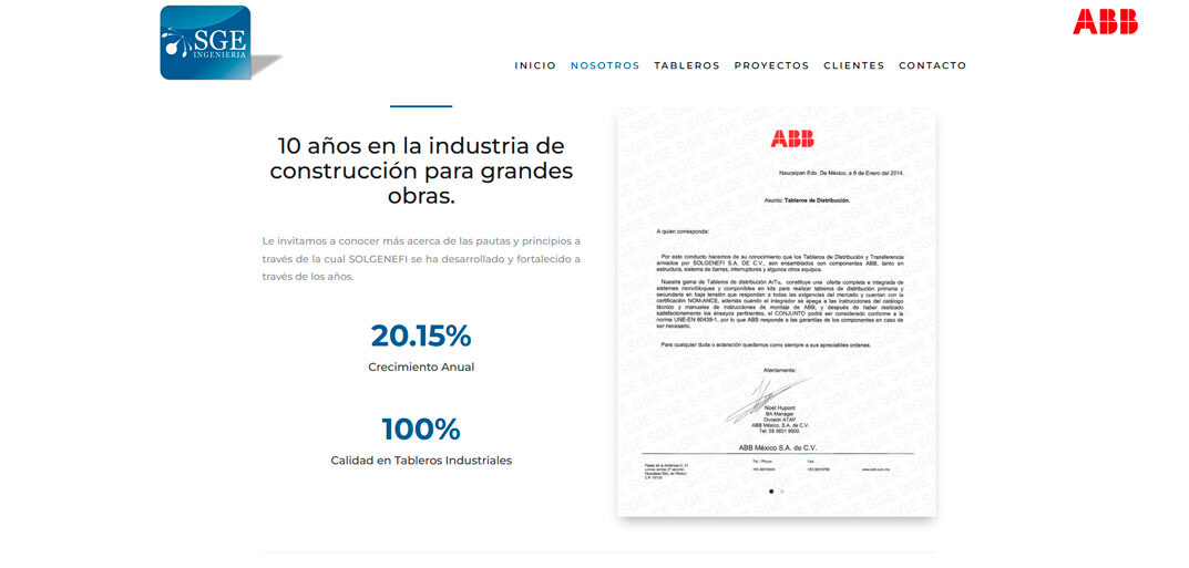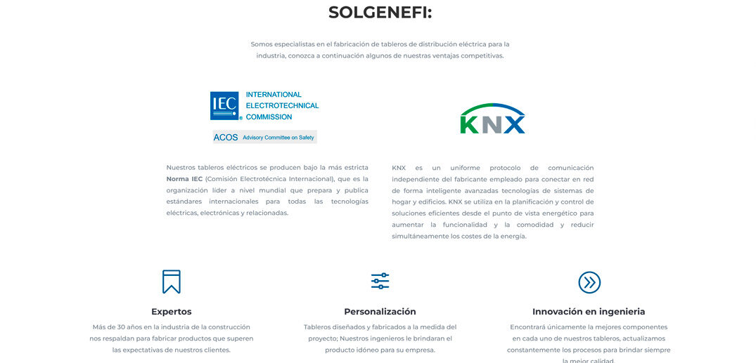 B2B Engineering Web Design applied to the creation of a corporate digital presence for SolGenEfi, a company specialized in the manufacturing, integration and supply of electrical panels and low-voltage control centers. This platform is designed to clearly and professionally communicate their technical capabilities, certifications and experience in industrial and commercial projects.
