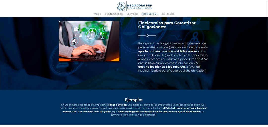 Corporate Page for Fiduciary Services represents an institutional platform focused on clearly communicating the scope, reliability and operational structure of the fiduciary entity. The project centered on generating trust and transparency through organized content, smooth navigation and a structure that provides direct access to essential information. This corporate page allows users to immediately understand fiduciary functions such as asset administration, financial instrument management, legal processes and asset-protection schemes, strengthening Mediadora PRP’s credibility as a trustworthy entity in the sector.