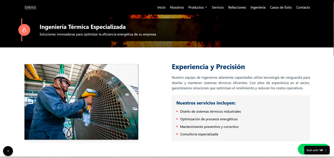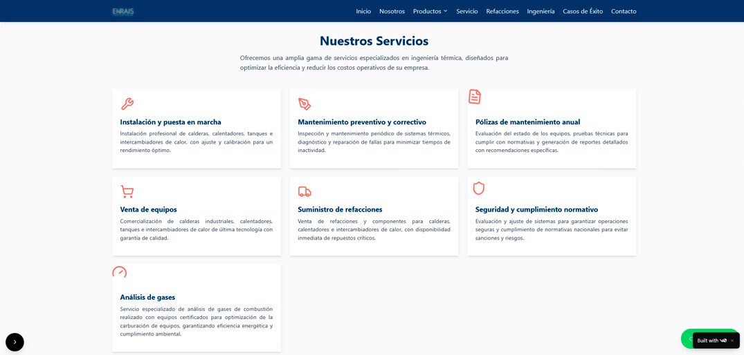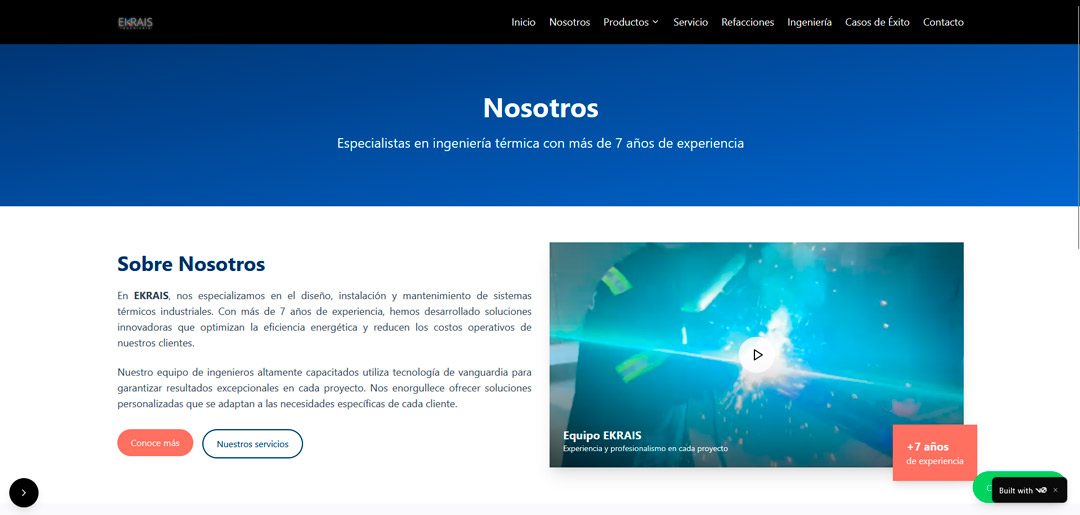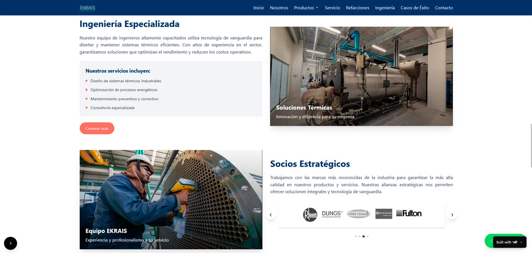 Ekrais is a company dedicated to the installation, maintenance and optimization of thermal engineering systems for industries, commercial environments and high-demand energy projects. Its corporate website needed to reflect precision, professionalism and an informative structure that supports its trajectory in the sector.